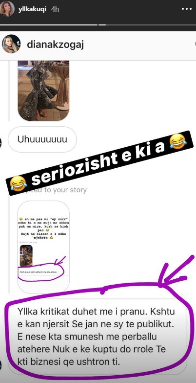 Më poshtë ua sjellim si foto, komentin e djekësit dhe kundërpërgjigjet e Yllkës./Lajmi.net/