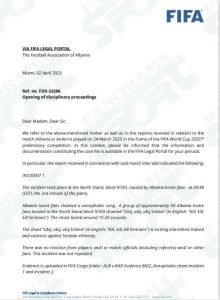 “Panorama Sport” ka siguruar një dokument nga FIFA, që tregon arsyen pse ndodhi ky dënim.