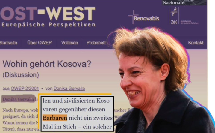 “Diese Barbaren” (Këta barbarë…) shfryente ajo në gjermanisht kundër UÇPMB-së në Luginë dhe UÇK-së në Maqedoni, që fajësoheshin se po përhapnin provokime të dhunshme në rajon.