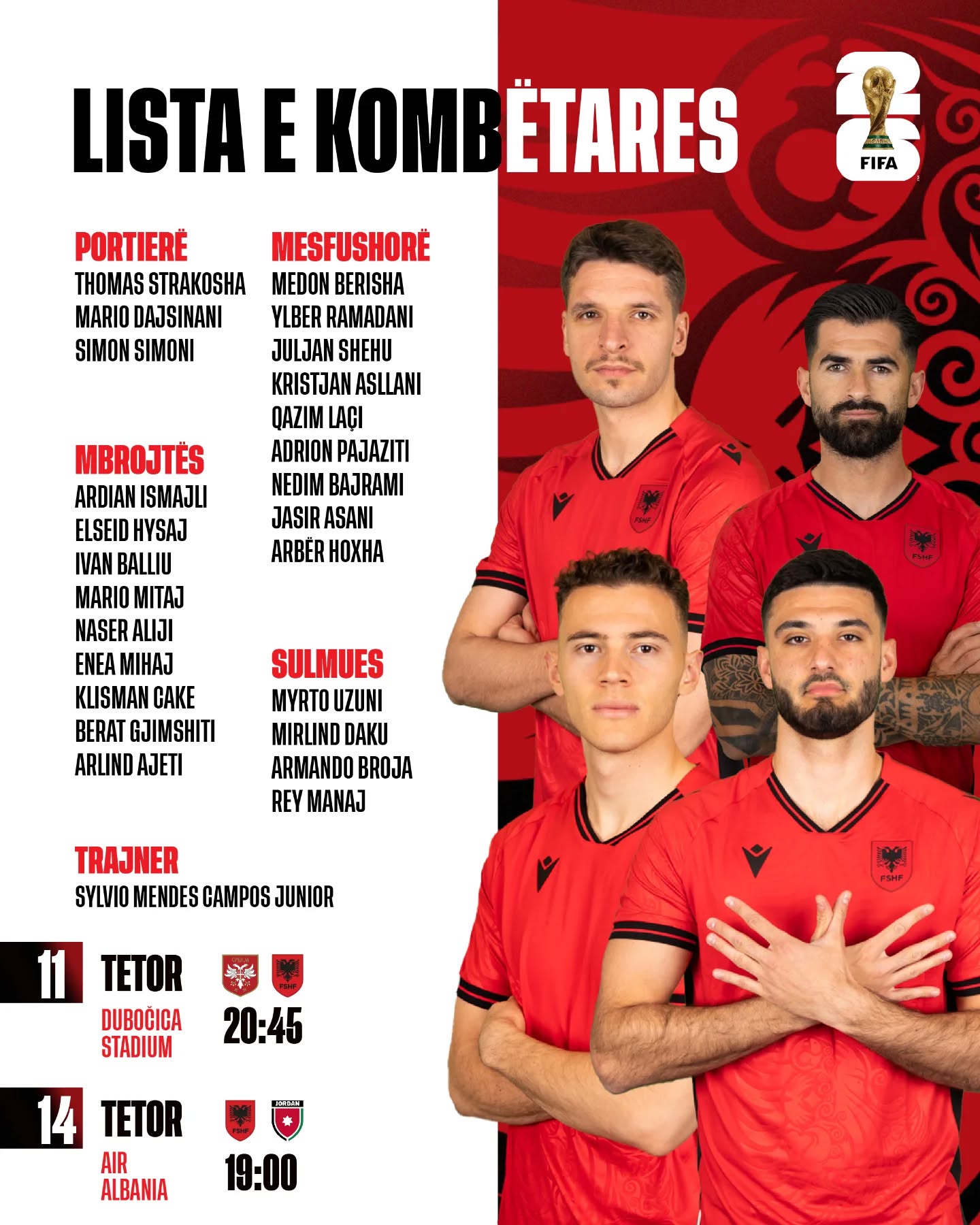 Kombëtarja e Shqipërisë ka zbuluar listën e futbollistëve për ndeshjen ndaj Serbisë, e vlefshme për kualifikim në Kupën e Botës 2026